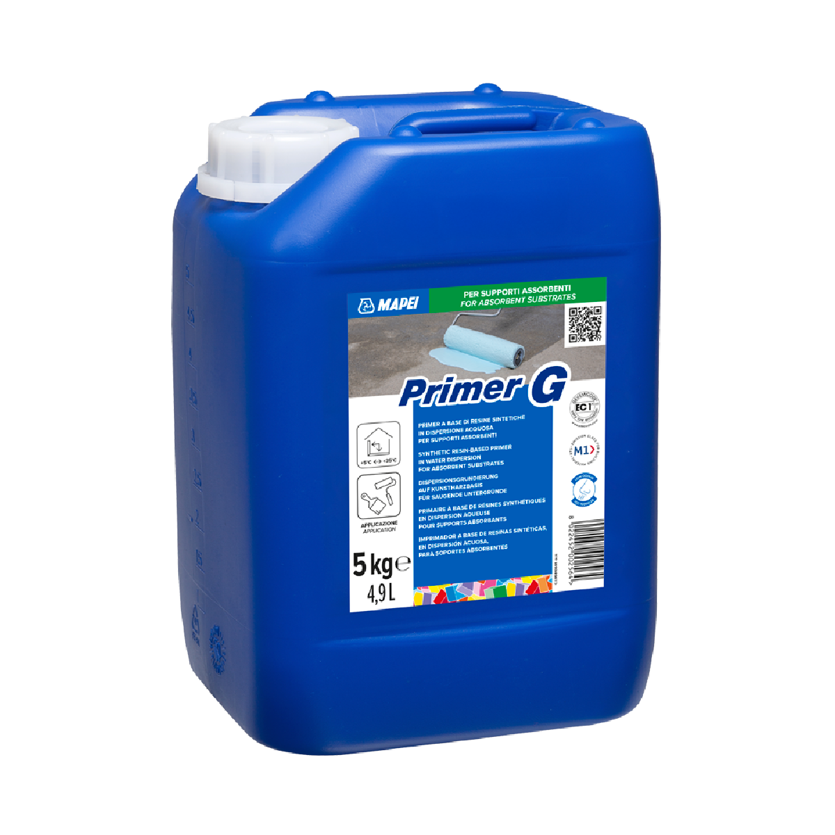 Mapei PRIMER G este o amorsă acrilică pe bază de apă pentru suprafețele absorbante peste care se toarnă șape autonivelante sau se aplică adezivi pe bază de ciment. Reduce și uniformizează absorbția de apă și fixează praful fin de pe suport pe bază de ciment sau ipsos. Îmbunătățește aderența materialelor de nivelare și corecție pe suprafețe din ciment și ipsos și pe suprafețe anhidre.